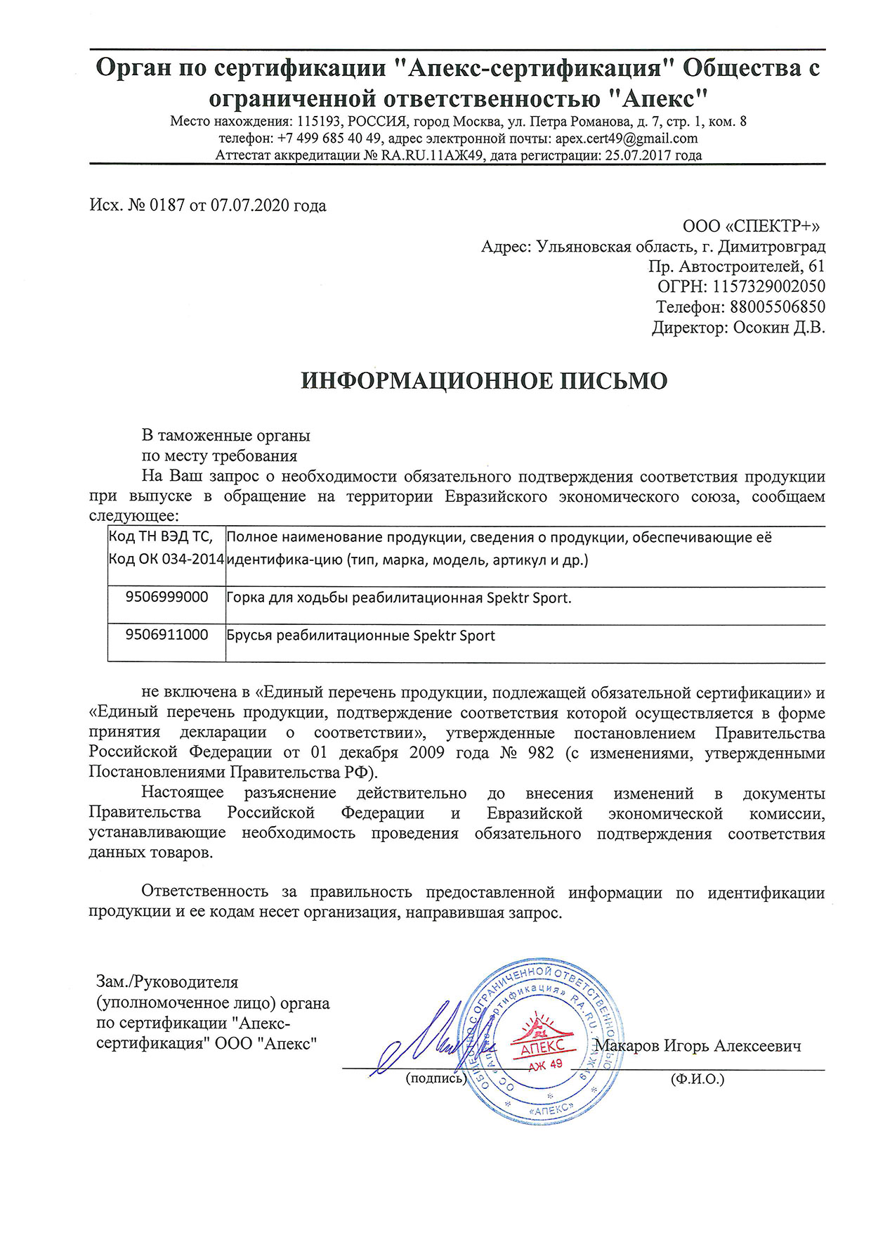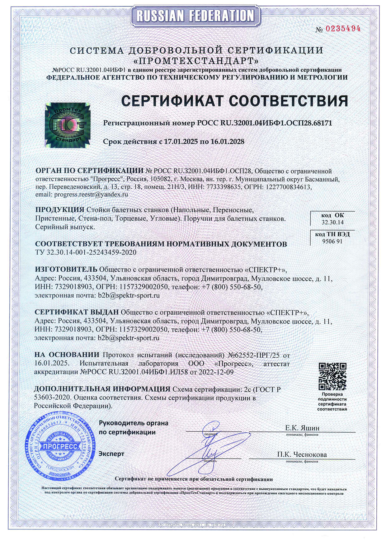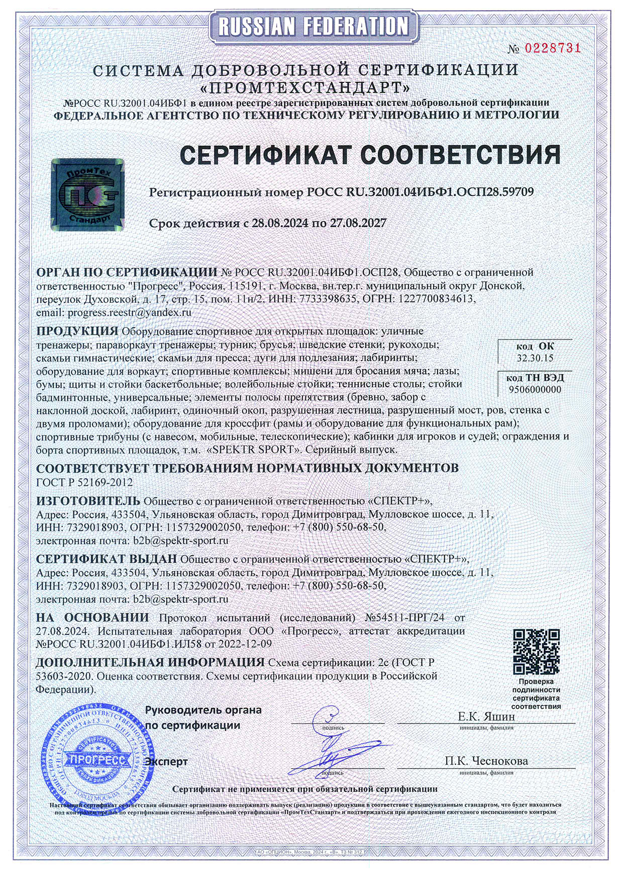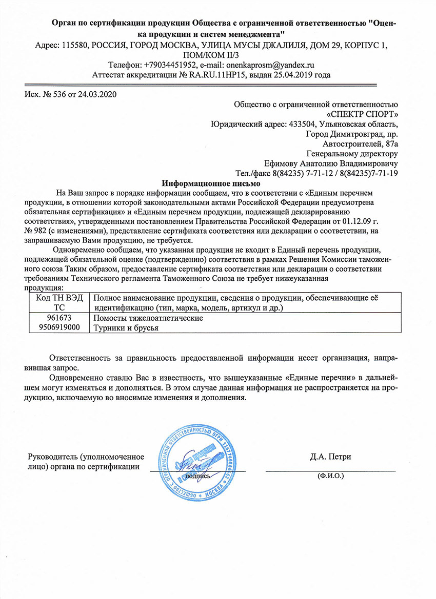 Сертификат соответствия (тренажёры, покрытия)
